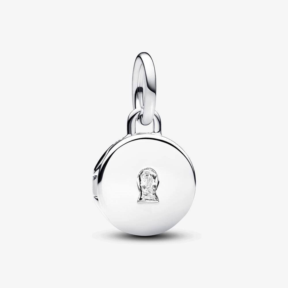 Keep what's most dear to you close to your heart with the Openable & Engravable Love Locket Dangle Charm. This sterling silver locket charm features a clear cubic zirconia stone on the front in the shape of a keyhole, and opens and closes securely so you can keep a tiny picture, note or lock of hair inside. The inside of the locket is engraved with the message "TODAY TOMORROW ALWAYS", and the back is blank for your own engraving. Wear it on your Pandora Moments necklace or bracelet as a symbol of keeping your love safe and a reminder to cherish it, every day.