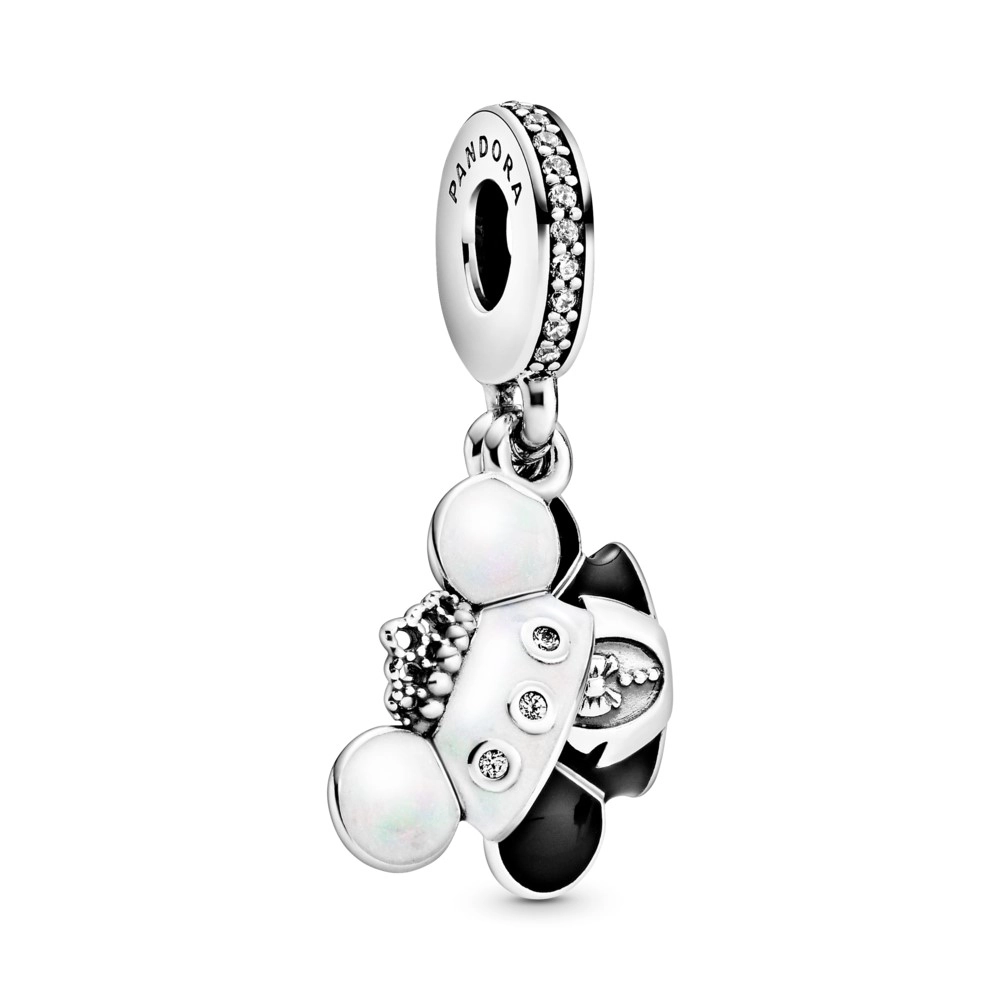 PANDORA Disney Mickey and Minnie wedding sterling silver dangle with clear cubic zirconia, black and shimmering silver enamel