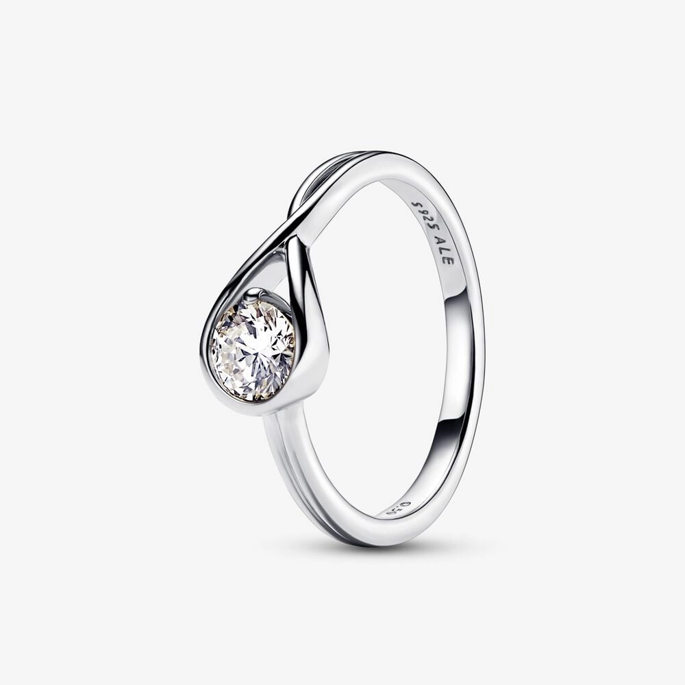 A solid sterling silver ring hand set with a 0.50 carat lab-grown diamond. A beautiful statement of empowerment and possibility, or a simple yet eloquent declaration of love. This ring features a scintillating round brilliant excellent cut lab-grown diamond in a modern infinity setting that flows seamlessly around the stone. It can be worn alone or stacked with other rings from the Pandora Infinite collection. Pandora Infinite lab-grown diamonds at and above 0.50 carat are certified by IGI. Each Pandora Lab-grown diamond is treated with a post-growth colour enhancement called annealing.