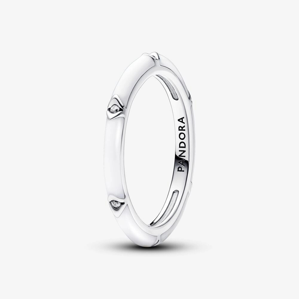Add impact to your look with the Pandora ME Stones & Enamel Ring. This sterling silver ring features shiny white enamel punctuated by reverse pyramid-shaped indents set with sparkling stones. Pair it with other Pandora ME rings in different textures and enamel colours to create your own custom stack.
