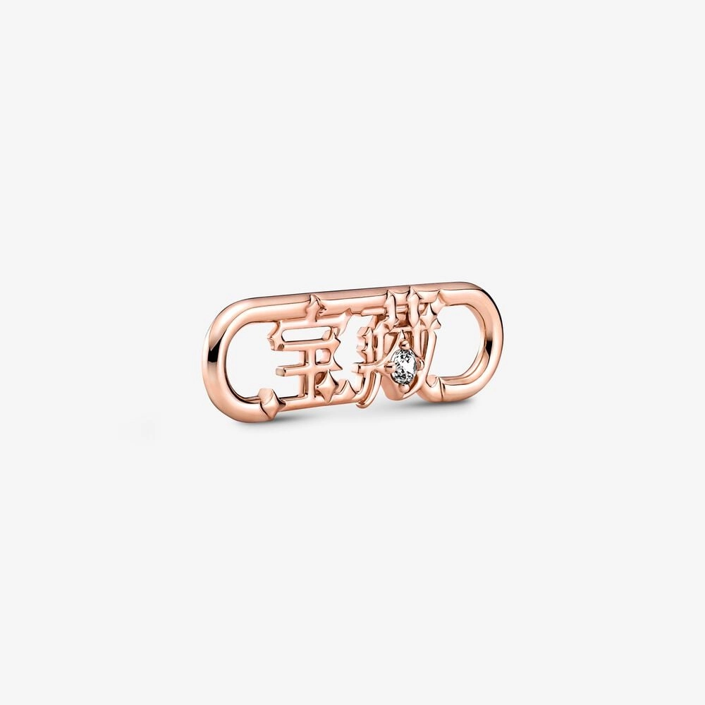 Wear your mantra everywhere you go with this Pandora ME Styling Treasure Word Link. In a polished finish, the 14k rose gold-plated styling link features Chinese characters that mean “my treasure” to serve as a positive reminder that you are loved, set with a sparkling round brilliant-cut clear cubic zirconia. Add significance to your looks by attaching this styling word link between openable links on your link chain bracelets, necklaces or hoops - you can even make it more personal with a medallion charm. Styling tip: one word link measures the same length as a double link or four small links, allowing infinite combinations. Please note this item is only compatible with Pandora ME jewelry and will not fit our other collections.Discover how to mix and re-mix your Pandora ME look here.