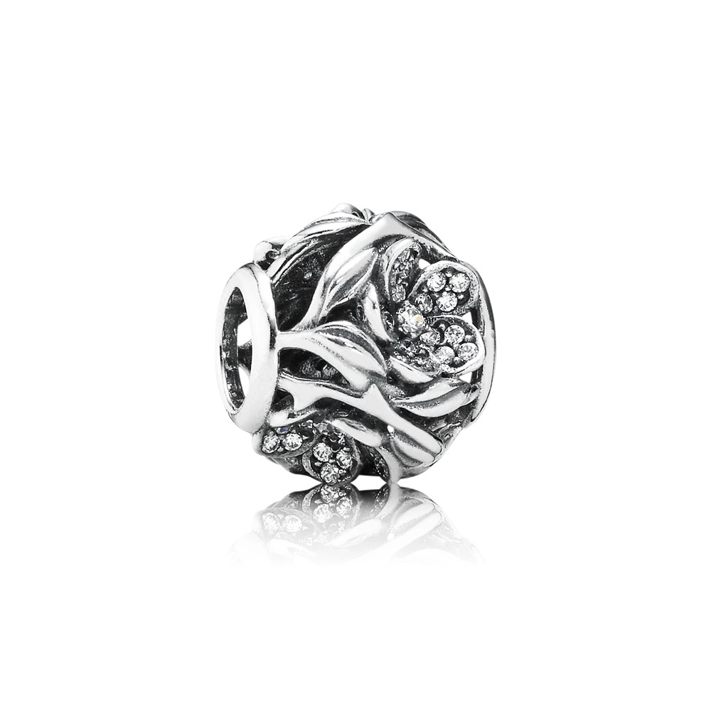 With shiny leaves and intricate sparkling flowers crafted from sterling silver and pavé-set cubic zirconia, PANDORA's stunning openwork charm exudes elegance. A gorgeous addition to any flower- or nature-themed bracelet.