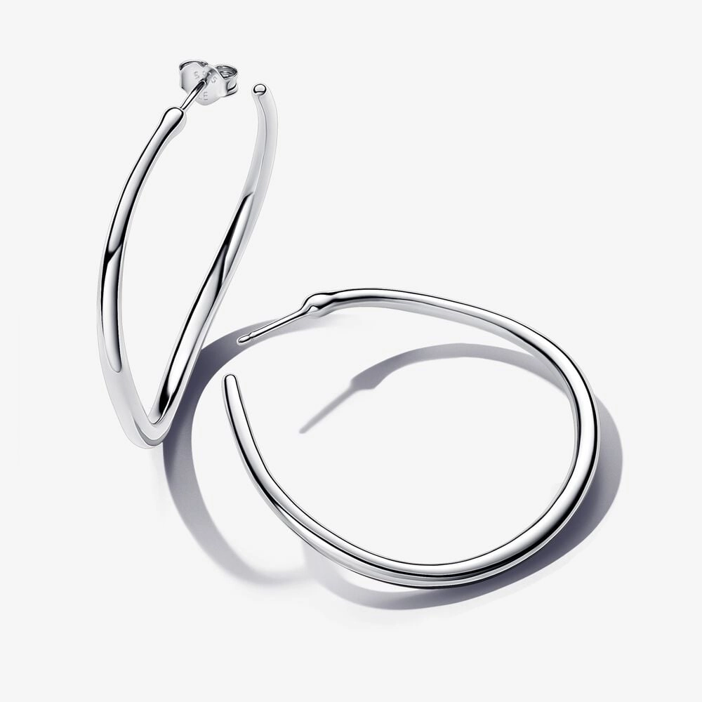 Play with linear curves when you wear the Organically Shaped 42 mm Open Hoop Earrings. This sterling silver set features slightly wavy open hoops with a rounded profile and varying thickness. The result is a delicate, fluid and organic look, evoking the ebbs and flows that can be found in nature. This earring set is a must-have addition to any hoop lover's collection, whether that's you or a stylish loved one.