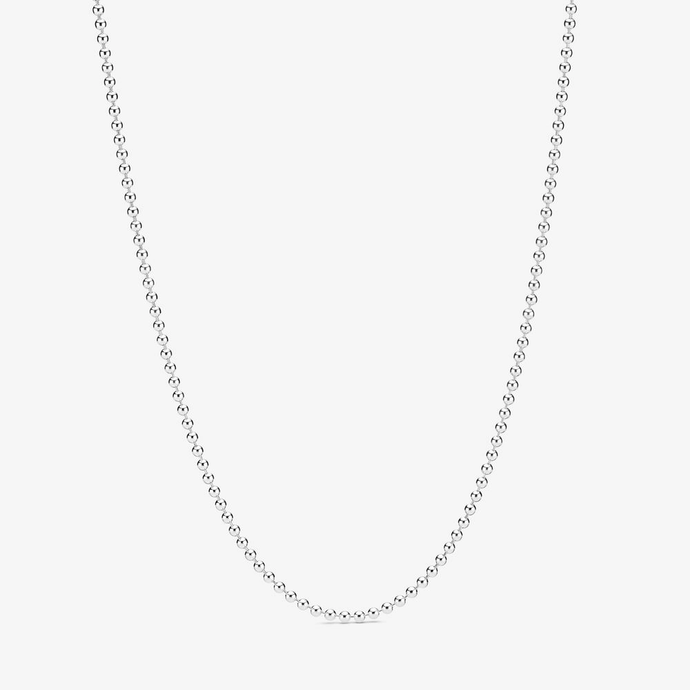 Keep your look simple yet sophisticated with the Polished Ball Chain Necklace. Hand-finished in sterling silver, this ball chain necklace is made up of a row of small beads. Available in one size and a fixed length, this piece makes for the ideal base to attach your favourite small or medium-sized Pandora O Pendant to. Please note: this style cannot be worn with large Pandora O Pendants or Pandora O Carriers.