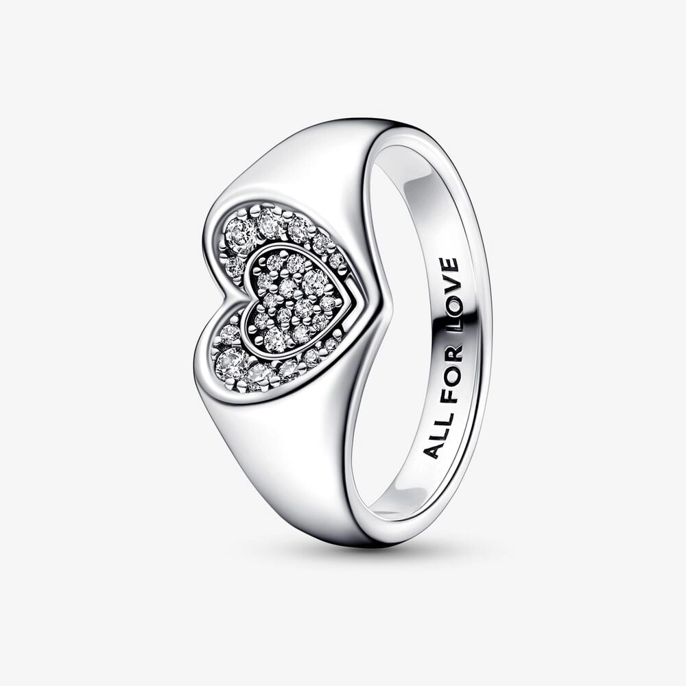 Channel the vibrant energy of love with our Radiant Heart Pavé Signet Ring. This ring features a concave, multidimensional heart design, accented with sparkling pavé and hand-finished in sterling silver. "ALL FOR LOVE" is engraved in the inside of the band as a sweet reminder of the power of two hearts joining together.