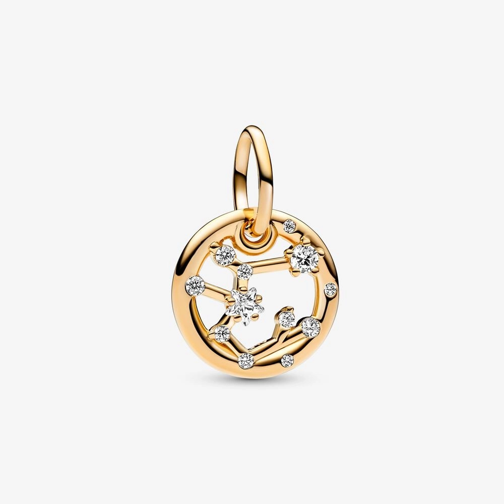 Let the stars guide your look with the Sagittarius Zodiac Dangle Charm. This Pandora Moments dangle charm is crafted our 14k gold-plated unique metal blend, has a circular outer frame and features clear sparkling cubic zirconia as well as the shape of the Sagittarius zodiac sign. The back side of the frame is engraved with "Sagittarius". Funny, honest and direct, the Sagittarius in your life can always be counted on to be intellectually inclined, adventurous and flexible. Wear it as a sign of your own sign's strength or give it as a gift of appreciation to the Sagittarius in your life.