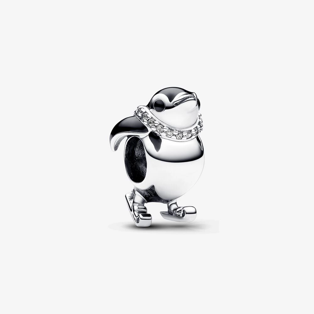 Whisk yourself away to a winter wonderland with our Skiing Penguin Charm. This sterling silver charm features a lovable penguin in a skiing pose, as if it's swishing through the snow. The penguin is brought to life with black enamel on its body, wings and eyes, and a cosy scarf embellished with sparkling pavé. The perfect gift to rekindle nostalgic memories of fun days in the snow.