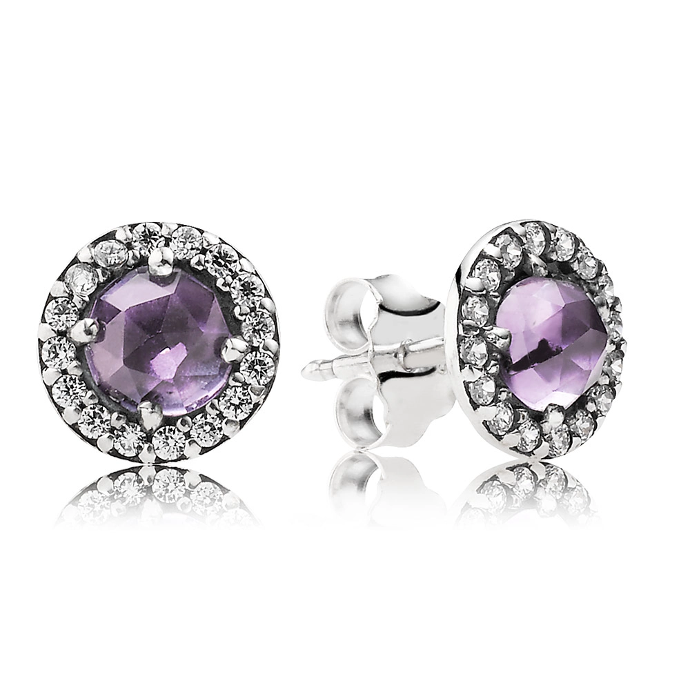 Make a statement with these vintage-inspired earrings with royal amethyst. A delicate halo of sparkling clear cubic zirconia stones enhances the drama of the center gem. Simple in shape but lavish in details, these timeless earring studs are the perfect accessories to take you from day to night.