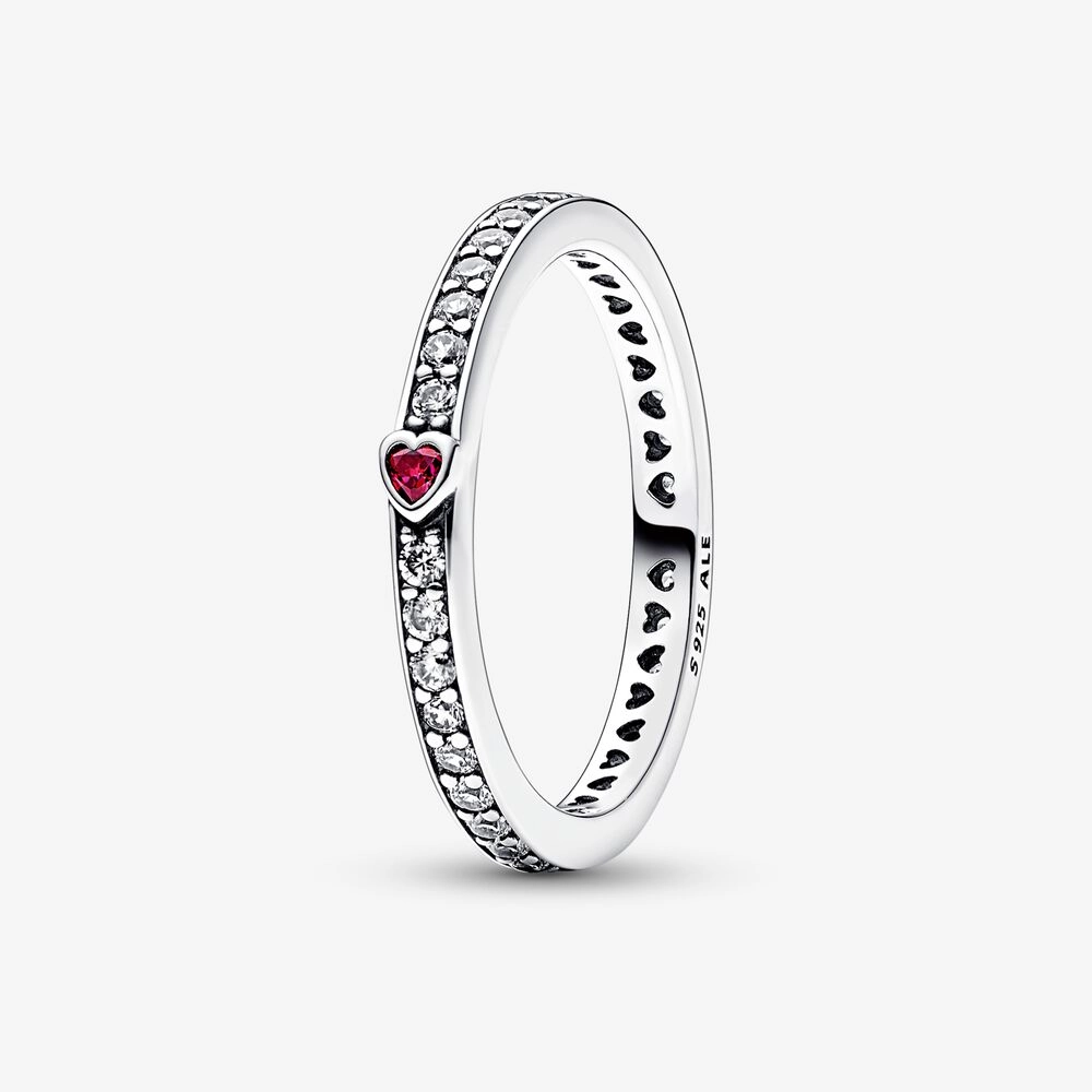 Wear a secret code shared between you and the one who has your heart with the Sparkling Love Message Ring. This sterling silver eternity ring features clear cubic zirconia pavé around the band with a red heart-shaped cubic zirconia stone at its centre. Hidden imprinted hearts around the inside of the ring band add an extra element of romance. Stack it with its counterpart, the Love Message Ring, and rotate the rings to reveal a hidden message shared just between the two of you.