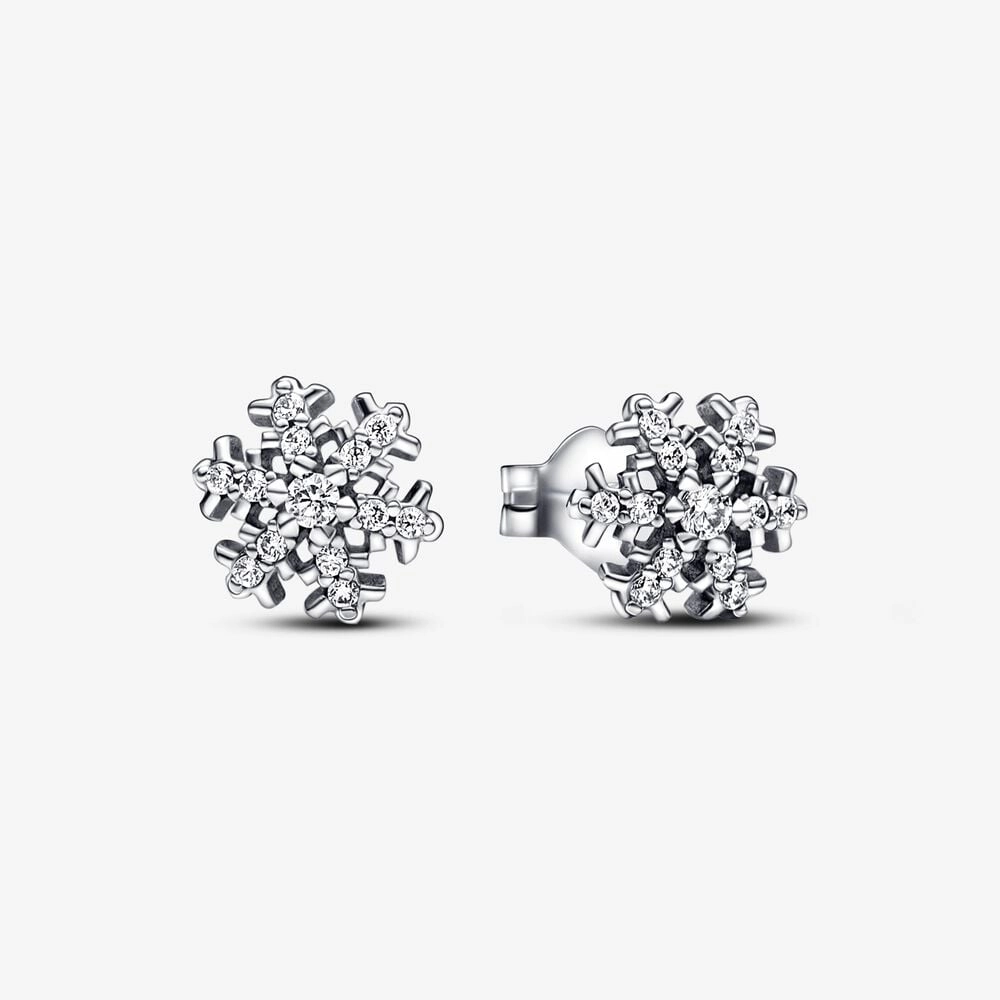 Channel the magic of the winter season all year round. Our snowflake-inspired sterling silver stud earrings are the perfect pieces for embracing the colder months in style. This elegant design features a snowflake motif set with clear cubic zirconia pavé for a glittering, frosty look. Add it to your collection on a Pandora Moments charm holder to keep a memory or milestone close to you.