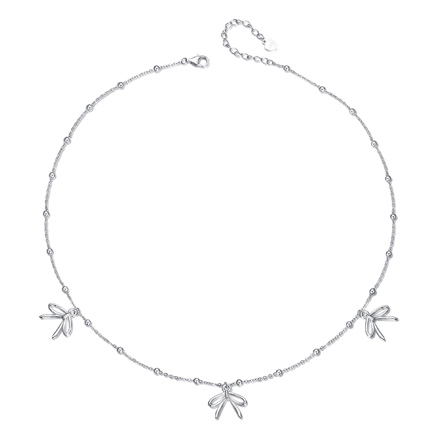 Bow necklace, with three simple bows and a spaced bead chain design, is fashionable, playful and full of girlishness.