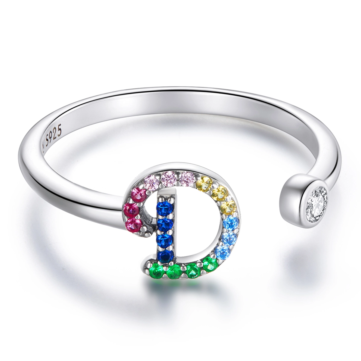 Pandora Style Colorful Letter-D Open Ring - SCR723-D