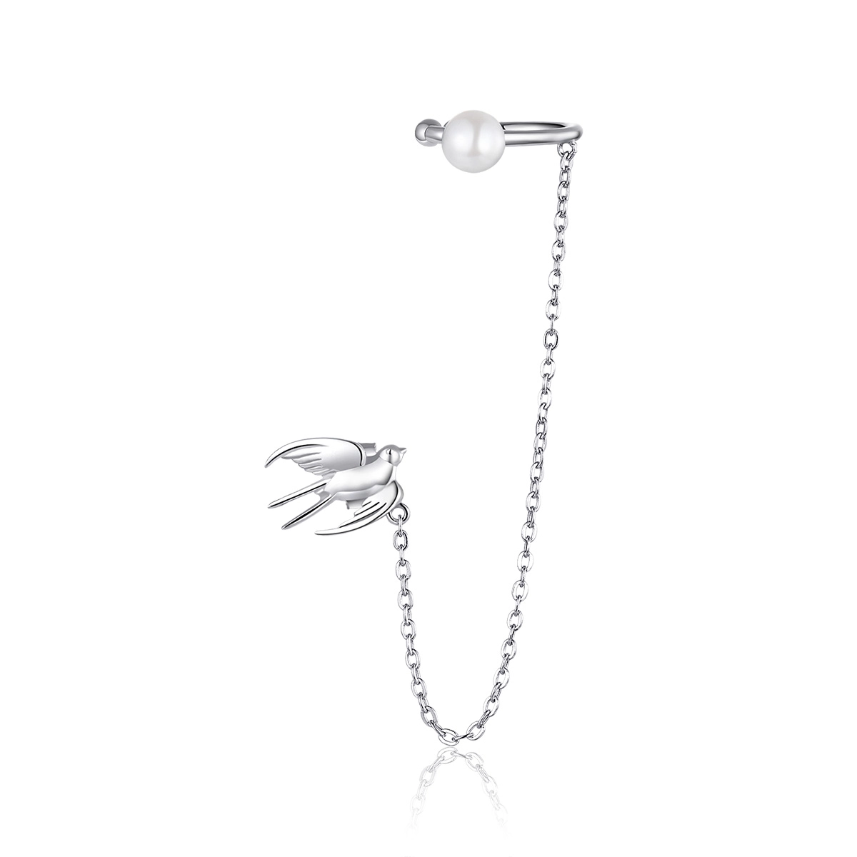The Pandora Style Flying Swallow Ear clip - BSE411, a stunning accessory that combines elegance and charm. Crafted with meticulous attention to detail, this ear clip is designed to add a touch of whimsy to your ensemble. Featuring a mesmerizing flying swallow motif, this ear clip captures the grace and freedom of these magnificent birds. The delicate silhouette is beautifully enhanced with intricate enamel work, showcasing vibrant colors that are sure to catch the eye. The swallow symbolizes love, hope, and new beginnings, making this ear clip a perfect gift for someone special or a meaningful addition to your own jewelry collection. What sets this ear clip apart is its comfortable and versatile design. Made from high-quality materials, it is lightweight and easy to wear, ensuring a secure fit without the need for pierced ears. The clip is adjustable, allowing you to customize the fit for maximum comfort. Whether you're attending a formal event or simply adding a touch of elegance to your everyday look, the Pandora Style Flying Swallow Ear clip - BSE411 is a must-have accessory. Its unique design and exquisite craftsmanship make it a standout piece that will effortlessly elevate any outfit. Be prepared to receive compliments as you showcase your personal style and embrace the beauty of these graceful creatures. Embrace the joy of flight and adorn yourself with the Pandora Style Flying Swallow Ear clip - BSE411. Experience the beauty, versatility, and symbolism it brings to your jewelry collection.Metal
