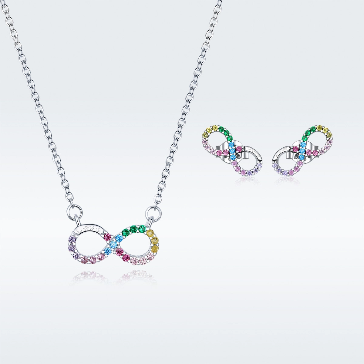 ExquisitePandora Style Infinity Symbol Jewelry Set- SET021 This stunning collection embodies timeless elegance and boundless love. This captivating set includes a necklace and matching earrings, adding a touch of sophistication to any outfit. Each piece is meticulously crafted with a delicate infinity symbol, symbolizing eternal love and connection. The pendant necklace features a beautiful infinity symbol plaque, elegantly dangling from a slender chain. The earrings echo this design, swaying lightly at the ears. Crafted from high-quality materials, this jewelry set is durable. The pendant and earrings are made of durable sterling silver, ensuring a lasting beautiful shine. The infinity symbol is set with sparkling cubic zirconia stones, adding a touch of dazzling glamour to the design. This…Pandora The infinity symbol jewelry set is both versatile and effortlessStylish and suitable for everyday wear or special occasions. The necklace is adjustable to the ideal length for a personalized look, while the earrings feature a secure back clasp for all-day comfort and peace of mind. Wear this captivating...Pandora Style Infinity Symbol Jewelry Set- SET021Treat yourself or surprise a loved one. It's the perfect gift to celebrate special milestones and anniversaries, and a wonderful token to convey heartfelt emotions. With its timeless design and enduring symbolism, this set is sure to become a treasured gem in any jewelry collection. Embrace eternal love and elegant style with this extraordinary jewelry set.
