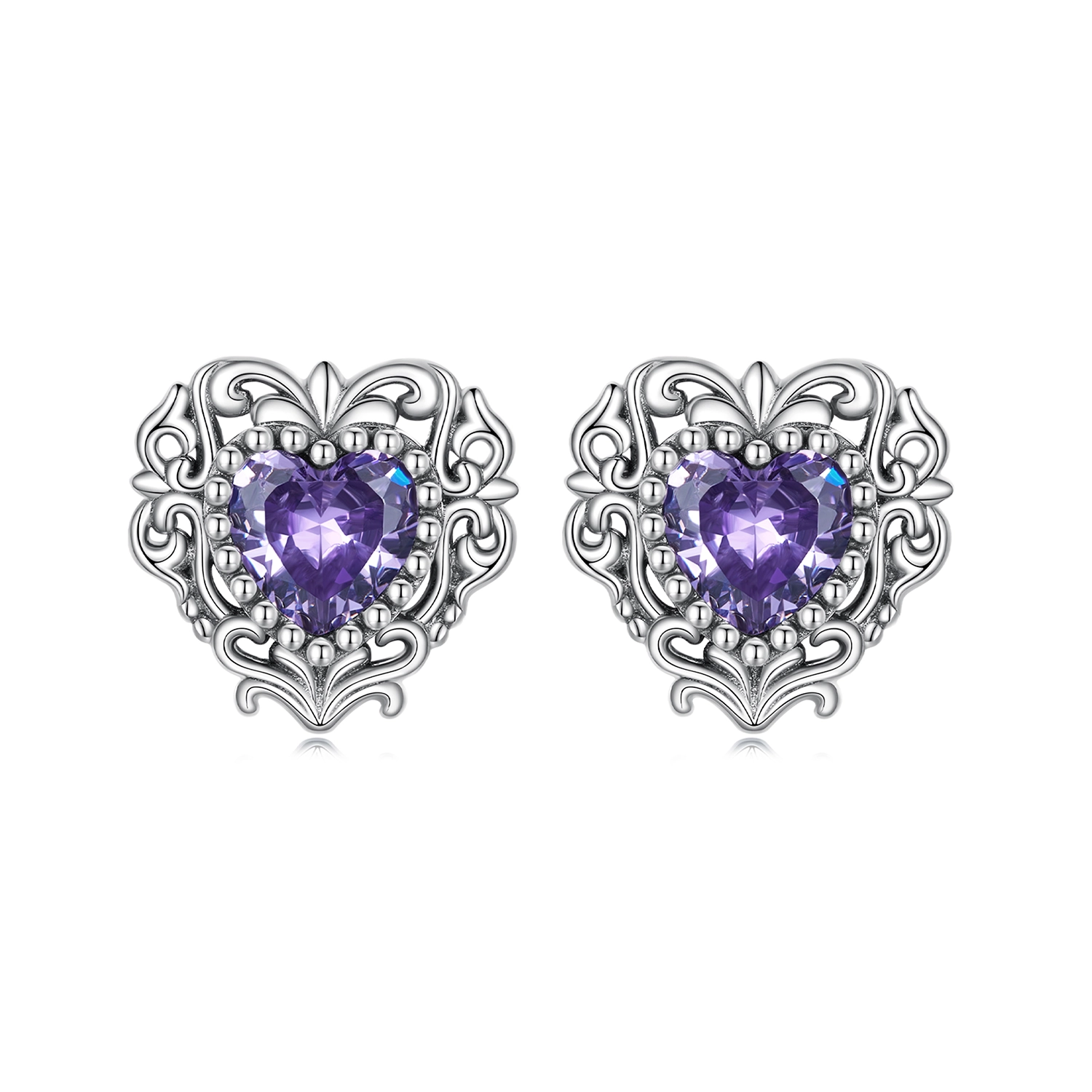 Our stunning Pandora Style Purple Zircon Heart Stud Earrings - BSE695, the perfect accessory to add a touch of elegance and charm to any outfit. Crafted with meticulous attention to detail, these earrings are designed to capture hearts and turn heads. The standout feature of these earrings is the mesmerizing purple zircon heart-shaped gemstones that exude a sense of romance and passion. The vibrant color adds a pop of brilliance to your ensemble, elevating your overall style effortlessly. The zircon stones are carefully selected for their exceptional clarity and sparkle, ensuring that these earrings will catch the light and shimmer with every movement. Crafted from high-quality materials, these earrings are built to last. The studs are made from durable sterling silver, providing a sturdy and reliable foundation for the exquisite gemstones. The silver is also hypoallergenic, making these earrings suitable for even the most sensitive ears. The secure butterfly backings ensure that these earrings stay in place, offering peace of mind throughout the day. The compact size of the studs makes them versatile for both casual and formal occasions, allowing you to effortlessly transition from day to night with a touch of elegance. These Pandora Style Purple Zircon Heart Stud Earrings - BSE695 are not only a stylish accessory, but they also make a heartfelt gift for a loved one. Whether it's a birthday, anniversary, or any special occasion, these earrings are sure to make a lasting impression and serve as a constant reminder of your love and affection. Indulge in the beauty and sophistication of our Pandora Style Purple Zircon Heart Stud Earrings - BSE695. Experience the joy of wearing a piece of jewelry that reflects your unique style and enhances your natural beauty. Order yours today and let these earrings be a symbol of love, beauty, and grace.Metal