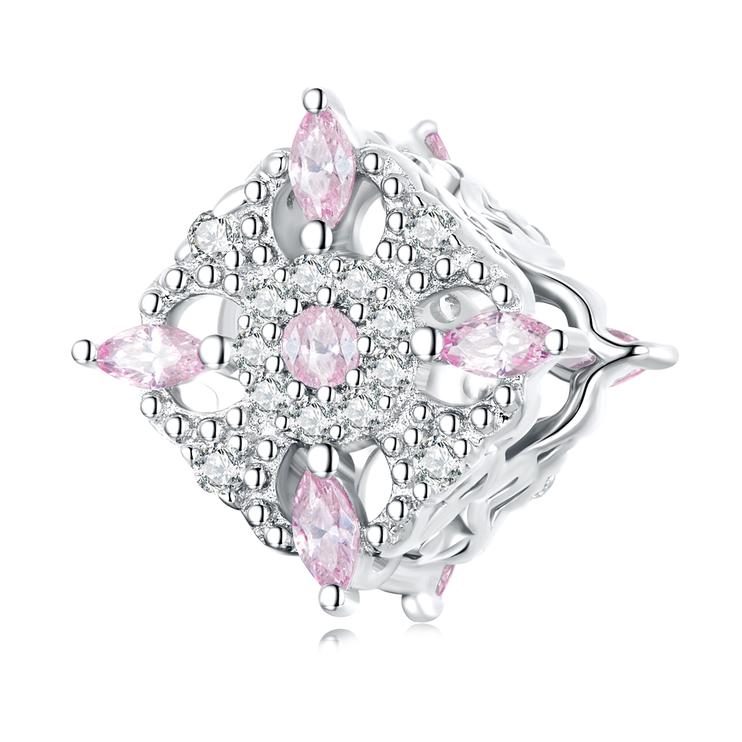 Inspired by retro patterns, the hollow beads are electroplated with white gold and are full of texture. They are inlaid with pink zircons, which are exquisite and shining, showing the classical aristocratic court style.
