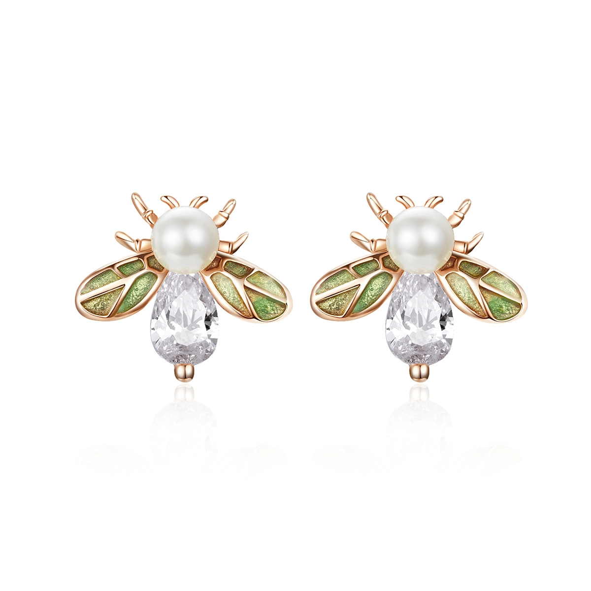 Pandora Style Rose Gold Bee Form with Pearl Stud Earrings - SCE643