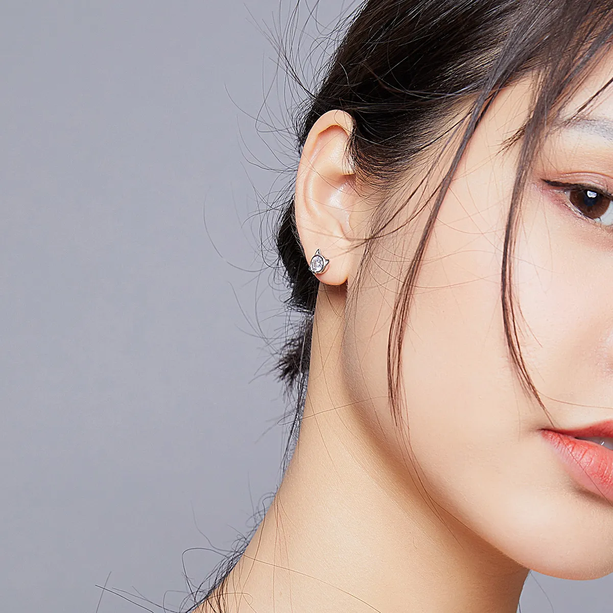 Pandora Style Silver Cute Cat Stud Earrings - SCE899
