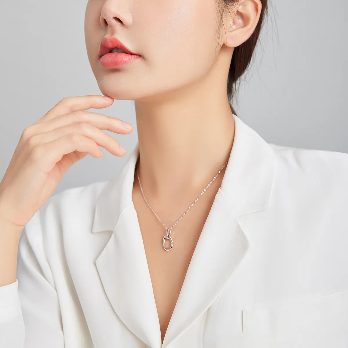 Pandora Style Silver Geometric Pendant Necklace - SCN440