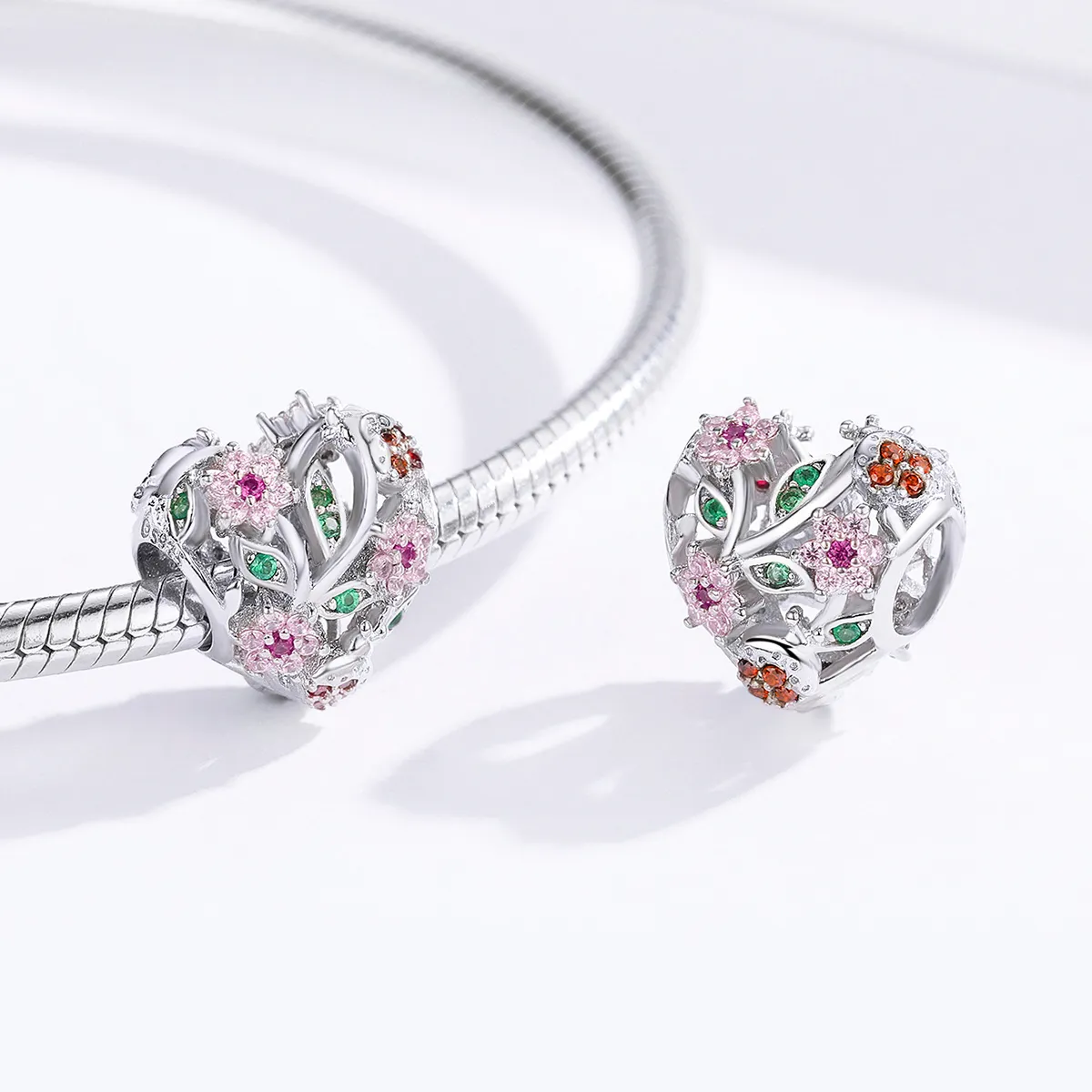 • Pandora Style Silver Ladybug & Flowers Charm - BSC117