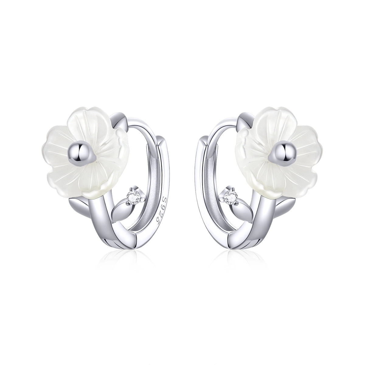 Pandora Style Silver Pure Flowers Hoop Earrings - BSE321
