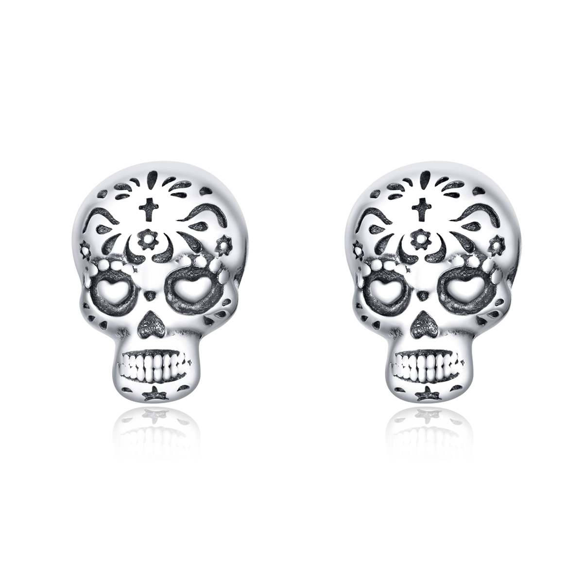 Made from high-quality silver, these stud earrings showcase a unique and intricately designed skull motif. The skull's detailed features and polished finish beautifully catch the light, adding a touch of sparkle to any outfit. Their compact size makes them perfect for both everyday wear and special occasions.