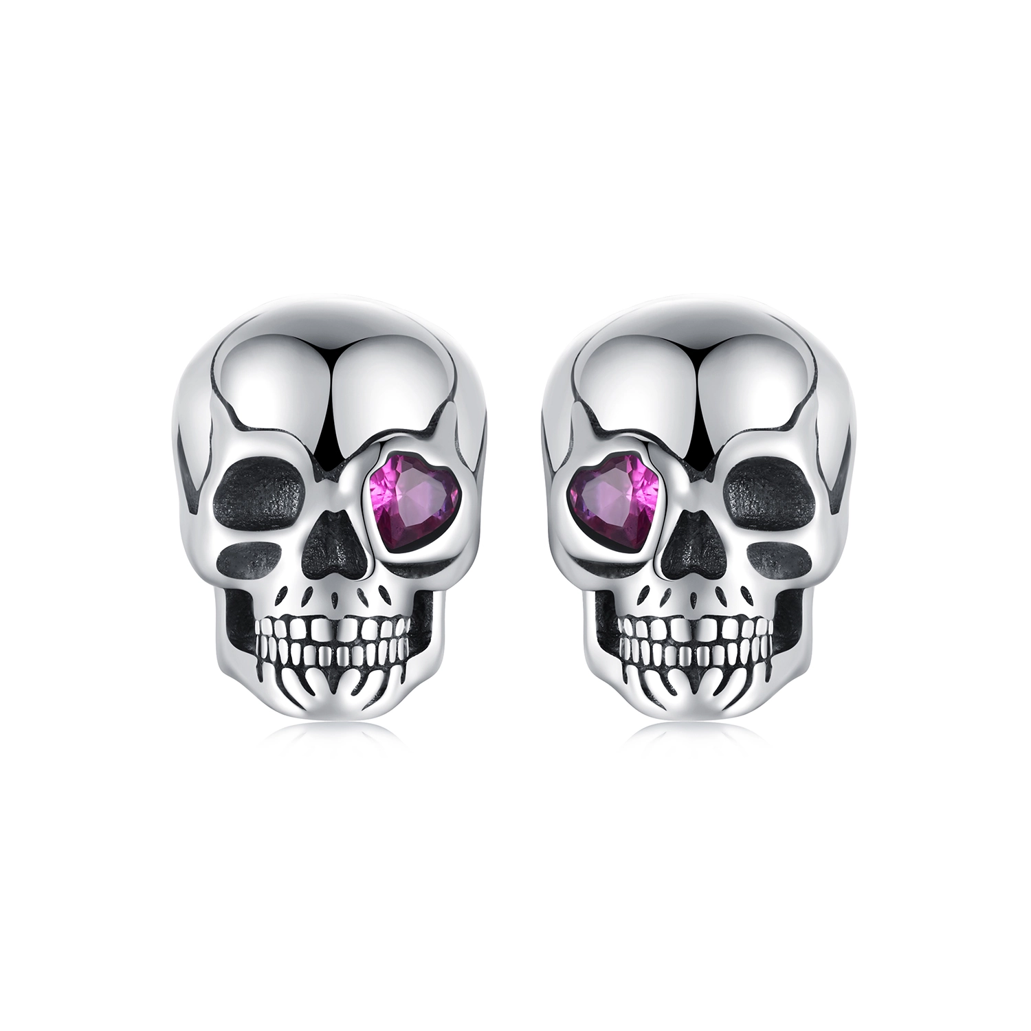 Skull earrings, one eye inlaid with a heart-shaped stone, the dark style reveals a romantic atmosphere, dark and full of personality.