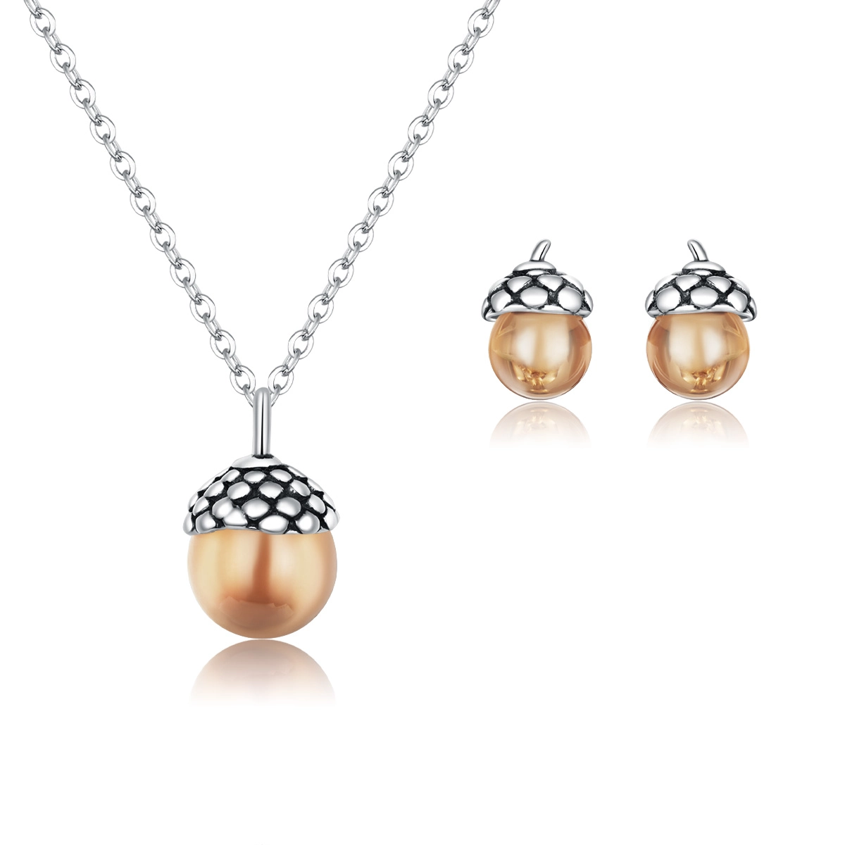 Pandora Stylish Sparkling Acorn Jewelry Set- SET019 This dazzling and exquisite collection is sure to captivate you. This stunning set includes a necklace and matching earrings, adding a touch of elegance to any outfit. The necklace pendant, crafted with meticulous artistry, features a delicate acorn pendant set with sparkling crystals, reflecting a dazzling light with every movement. The earrings echo the necklace's design, creating a harmonious and unified look. Made from high-quality materials, this jewelry set not only radiates a beautiful shine but is also exceptionally durable. Both the pendant and earrings are long-lasting, ensuring years of enjoyment.Pandora Stylish Sparkling Acorn Jewelry Set- SET019The design is versatile, allowing you to effortlessly transition between day and night. Whether attending a formal event or simply elevating your everyday style, this accessory set will be a must-have. With its timeless design and irresistible charm, this jewelry set also makes a memorable gift. Surprise your loved ones with a gift symbolizing growth and prosperity, creating a meaningful and affectionate gesture. Immerse yourself in...PandoraStylish Sparkling Acorn Jewelry Set- SET019Embrace its captivating charm and the elegant style it brings to your jewelry collection. Elevate your style with this exquisite set and leave a lasting impression.