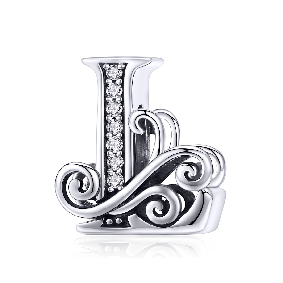 The Pandora Style Sparkling Pavé Flower Letter L Charm - BSC030-L, a delightful addition to your charm collection. This exquisite charm features a beautifully crafted letter 'L' adorned with sparkling pavé flowers, adding a touch of elegance and personalization to your Pandora bracelet. Made with precision and attention to detail, this charm is the perfect way to showcase your individuality. Whether you want to celebrate your own name or commemorate a loved one with an 'L' initial, this charm is a meaningful and stylish choice. The shimmering pavé flowers add a touch of glamour and sparkle to any outfit, making this charm suitable for both casual and formal occasions. The high-quality craftsmanship ensures long-lasting durability, allowing you to enjoy this charm for years to come. Designed to fit seamlessly onto your Pandora bracelet, this charm effortlessly blends in with your existing collection. Its versatile design allows you to mix and match with other charms, creating a unique and personalized look that is truly your own. Add a touch of sophistication and personalization to your bracelet with the Pandora Style Sparkling Pavé Flower Letter L Charm - BSC030-L. Perfect as a gift for yourself or a loved one, this charm is sure to make a lasting impression. Embrace your individuality and let your charm collection shine with this stunning piece.