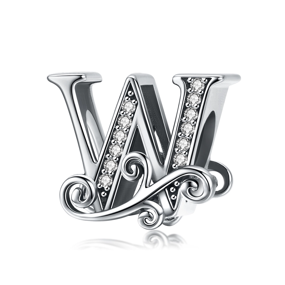 Pandora Style Sparkling Pavé Flower Letter W Charm - BSC030-W