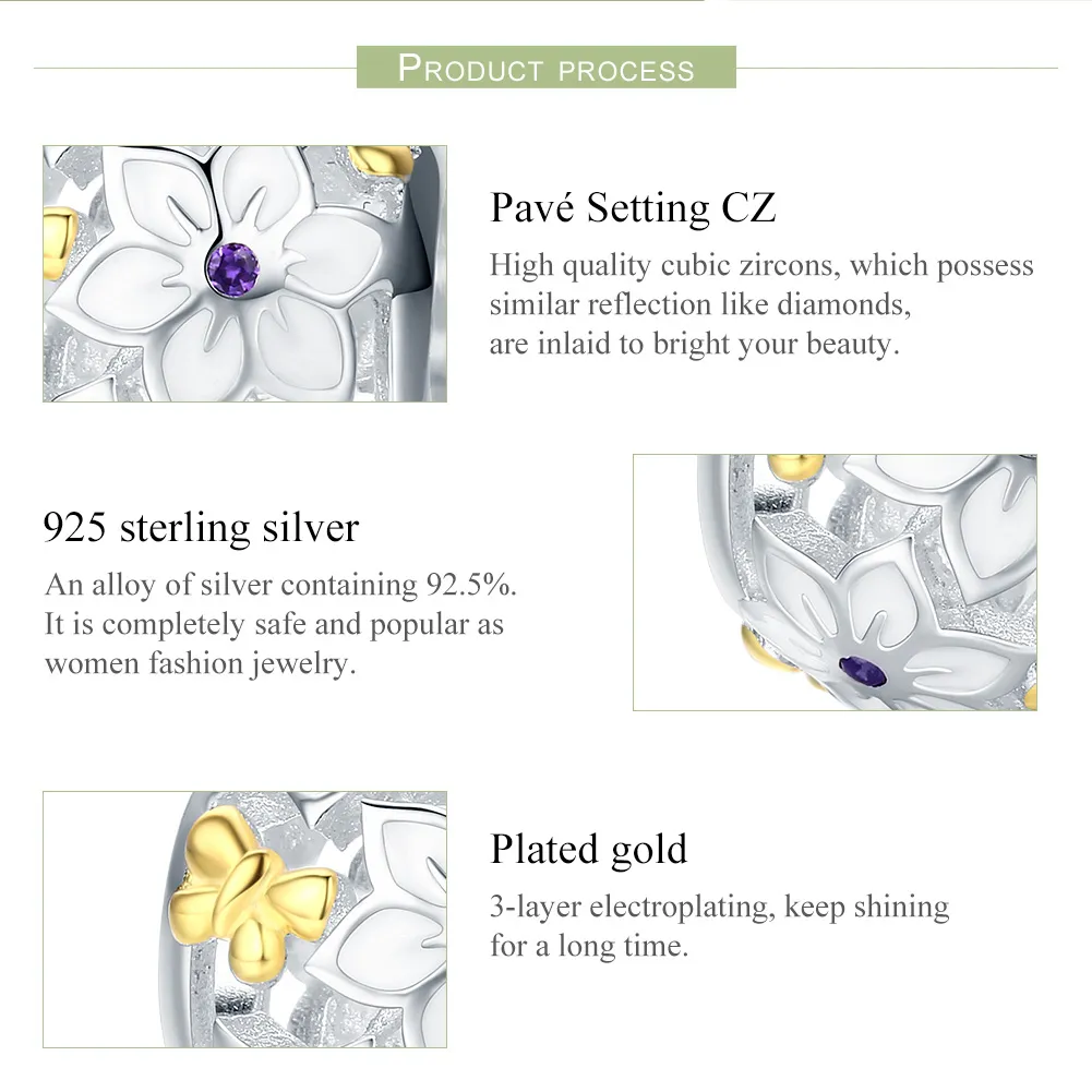 Pandora Style Two Tone Bicolor Flowers And Butterflies Charm - SCC546