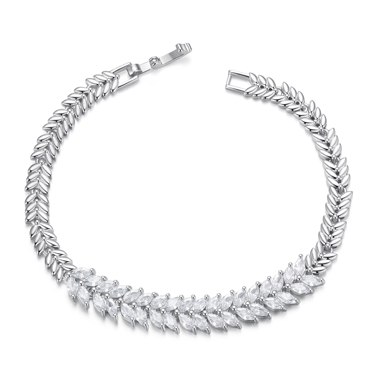 Pandora Style Sparkling Leaf Chain Bracelet - YIB067-A
